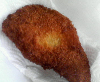 5.衣の色がキツネ色に変わったら、キッチンペーパーをしいた皿に乗せる