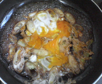 7.ネギが煮えたら、卵を1個とき、フライパンに投入します