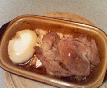 今日の一言「簡単チャーシューもどき、煮卵もどき、それっぽいっすよ」
